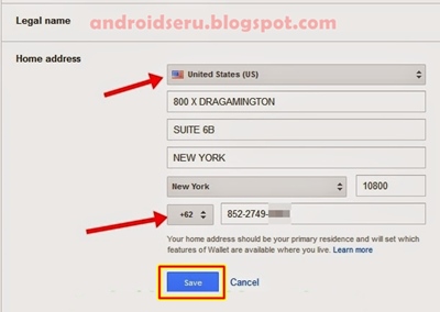 - Ubah alamat domisili menjadi Amerika Serikat, atau lihat contohnya di bawah ini.